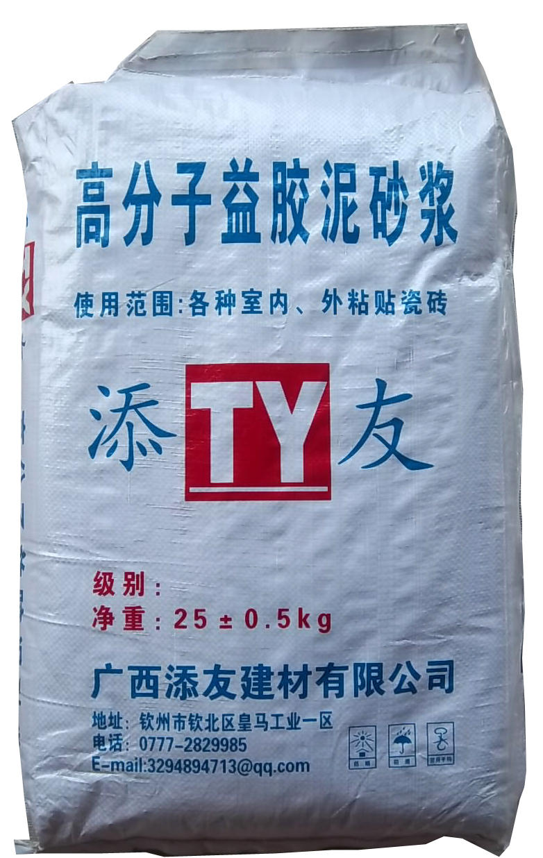 品牌:添友TY 品名:高分子益膠泥砂漿 凈重:25kg左右 使用范圍:各種室內(nèi)、外粘貼瓷磚